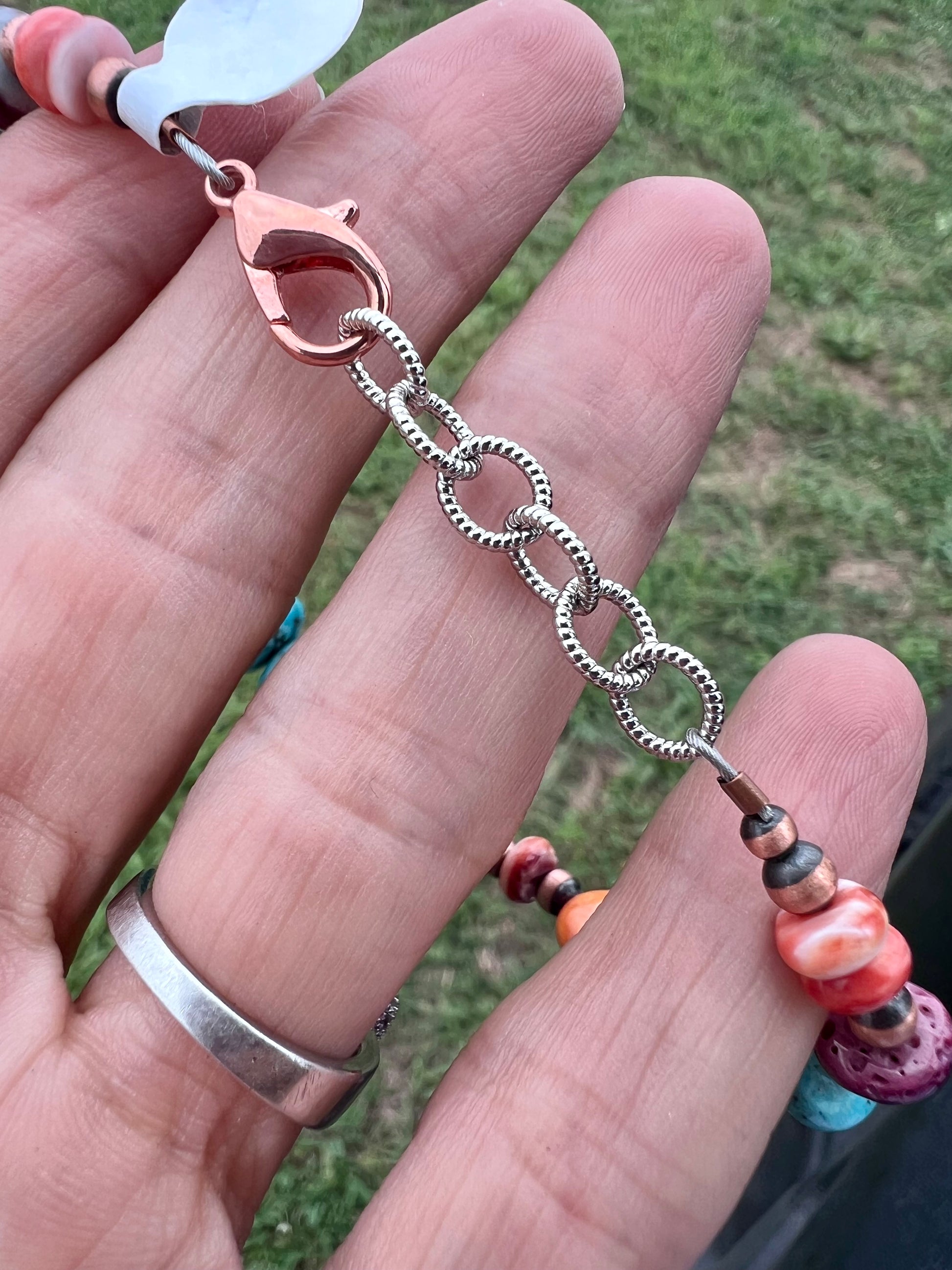 Copper, Orange/Red/Purple Spiny, Turquoise & Lapis Beaded 4-10mm Bracelet Sz 7-8β