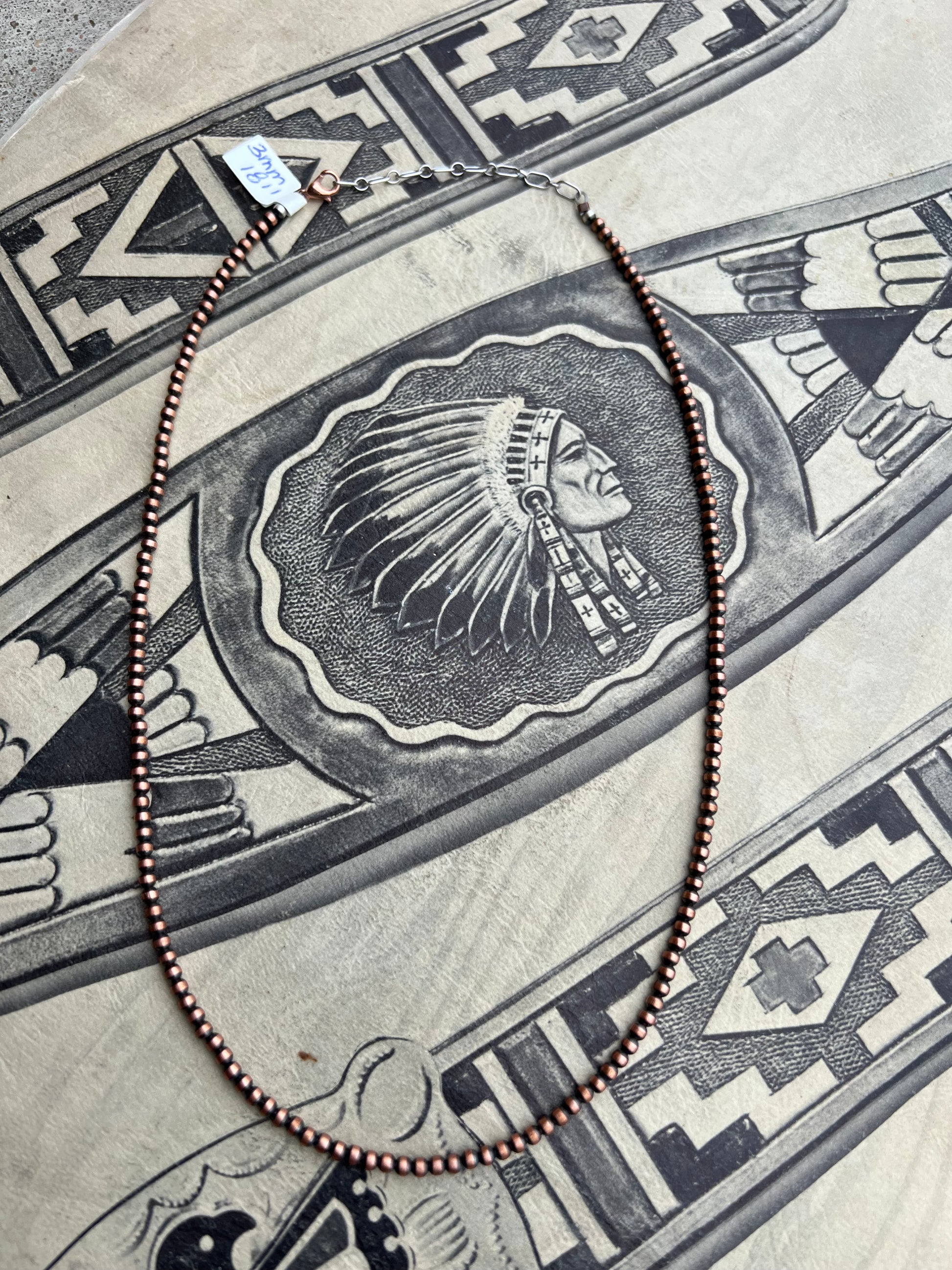 Copper Oxidized 3mm Bead Necklace 18”-20”