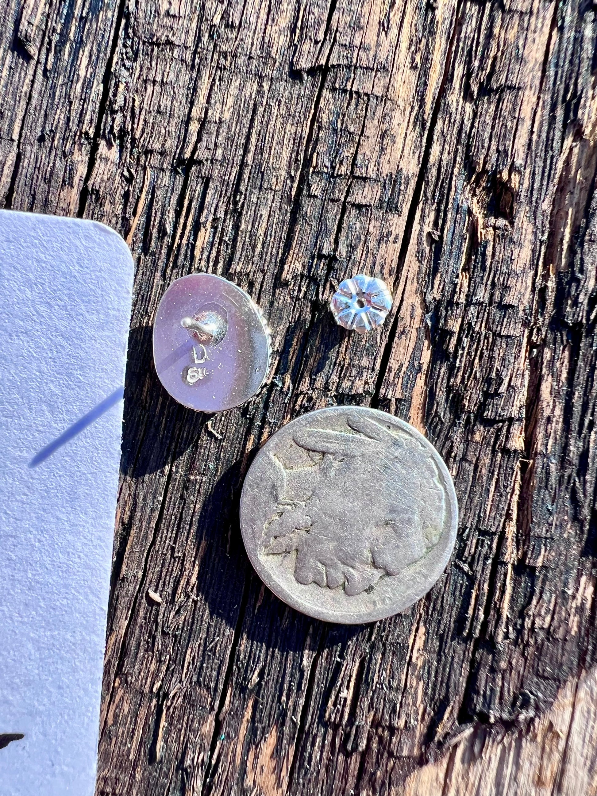 Native American Handmade by Dustin Calvin, Sterling & Golden Hills Turquoise Post Earrings Sz 1/2”