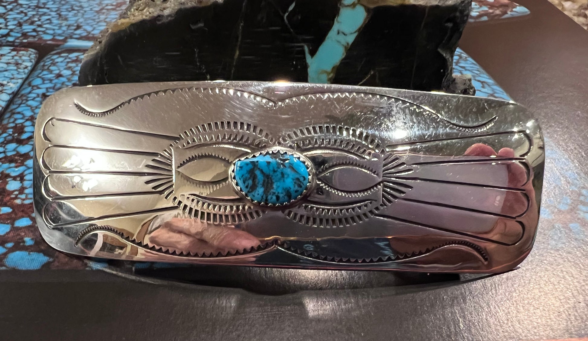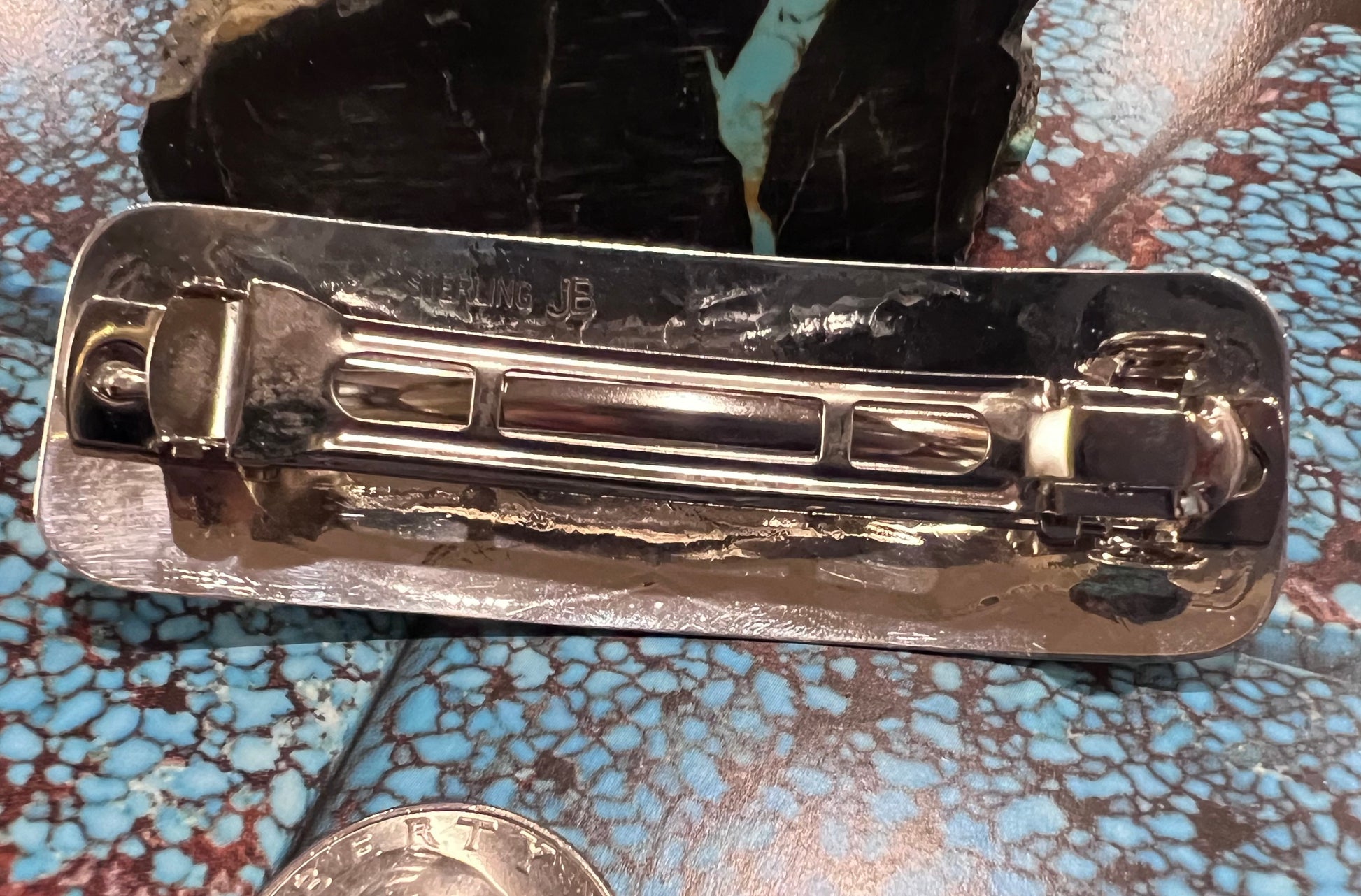 Handmade by Jolene Begay - Sterling & Kingman Turquoise Hair Barrette 3”x1”