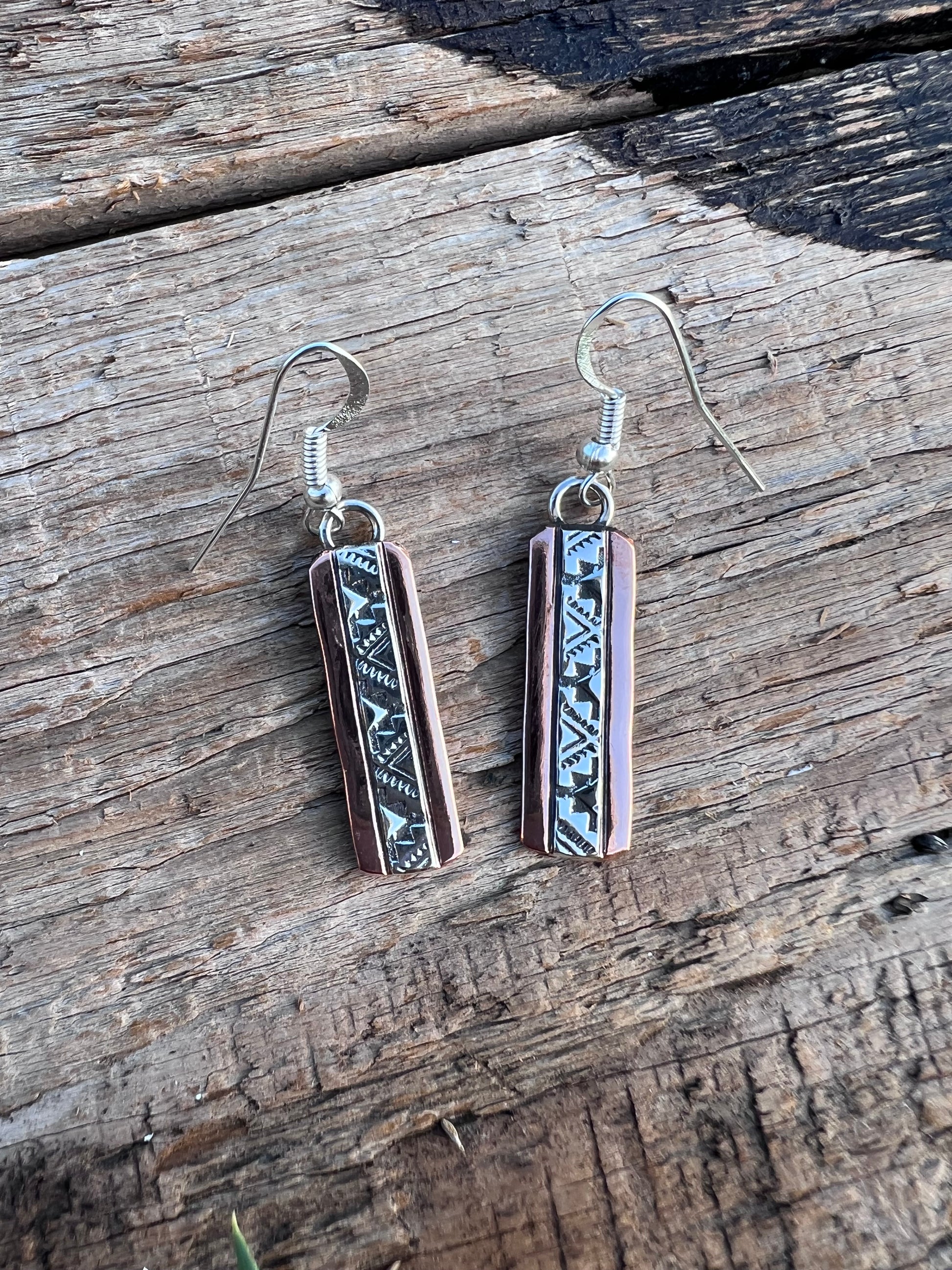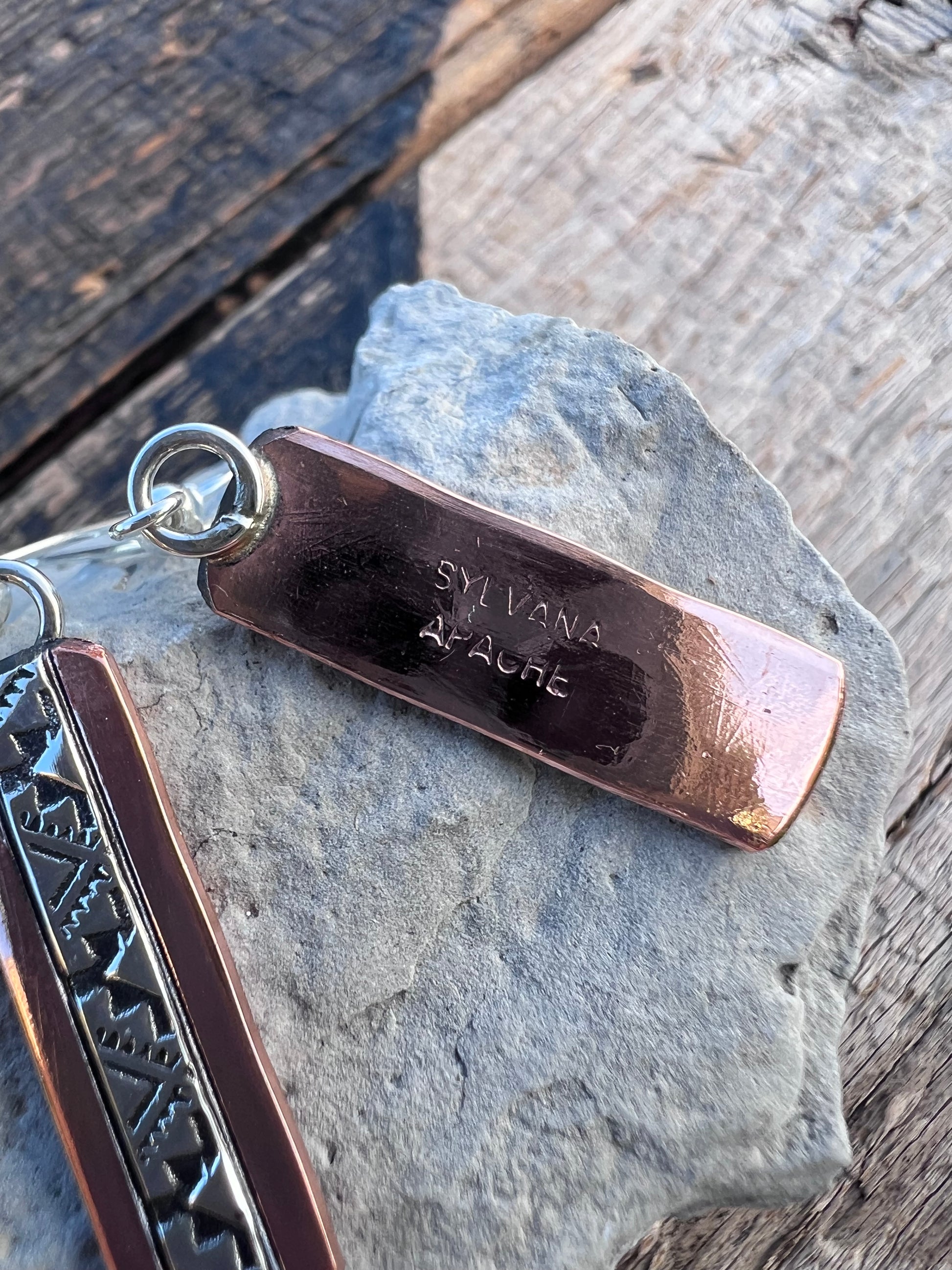 Navajo Handmade by Sylvana Apache Copper & Sterling Silver Earrings 2 7/8β