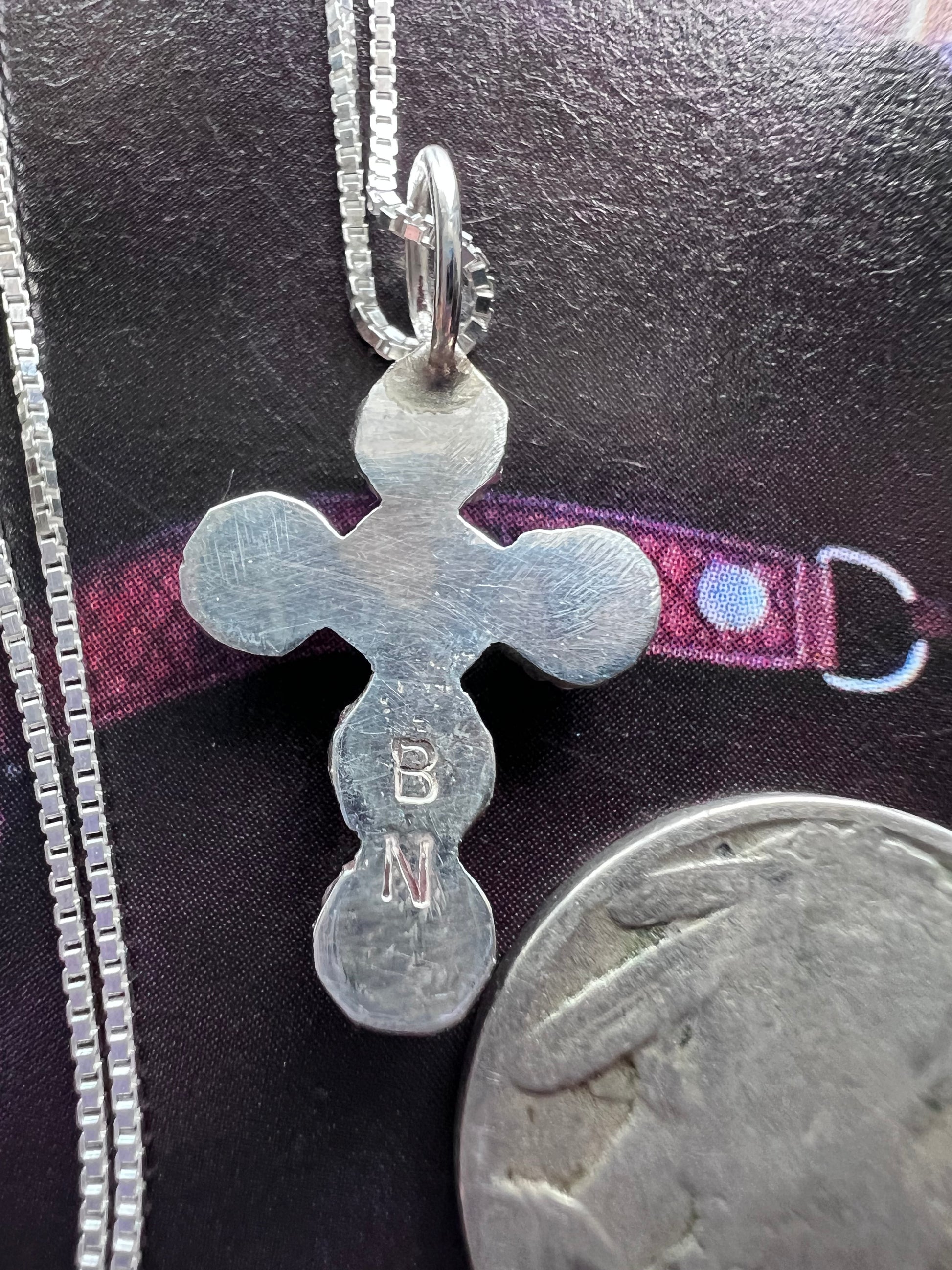 Handmade Sterling & Turquoise Cross Pendant on 16” Sterling Box Chain