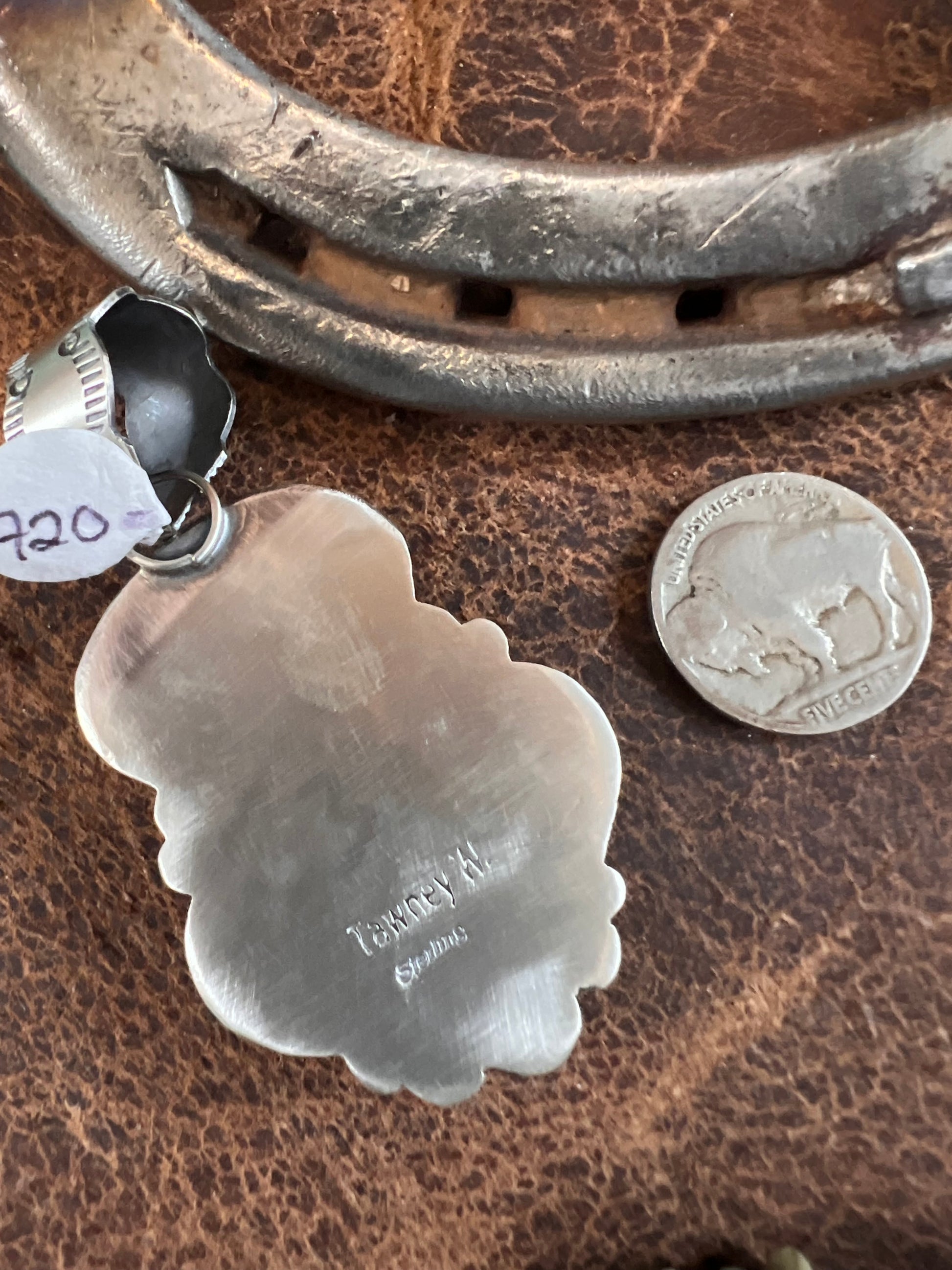 GORGEOUS Navajo Handmade Blue Moon Turquoise 2-stone Pendant by Tawney Willie.
