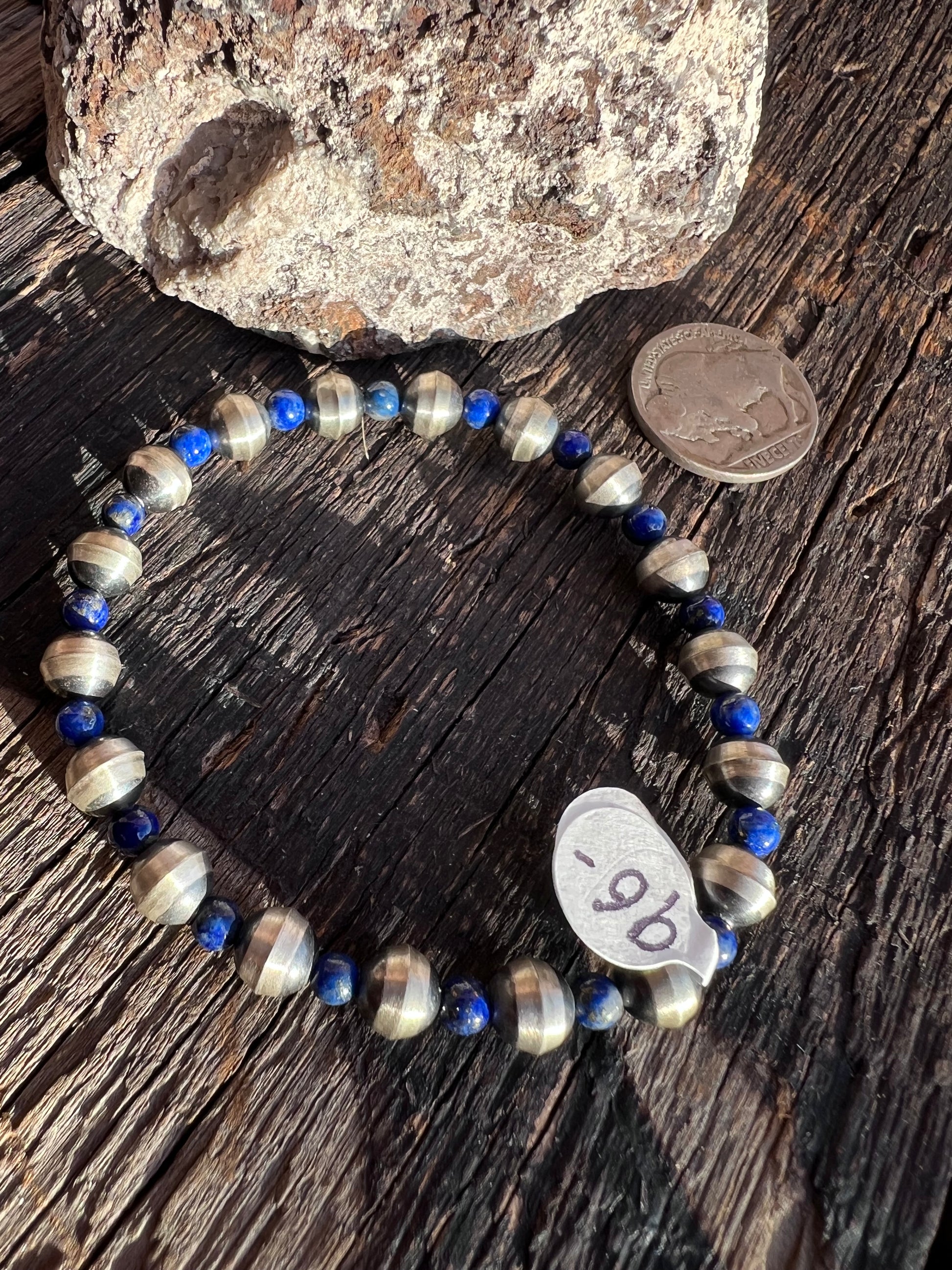 Southwest Sterling & Lapis Bead Stretch Bracelet Sz 6.5”