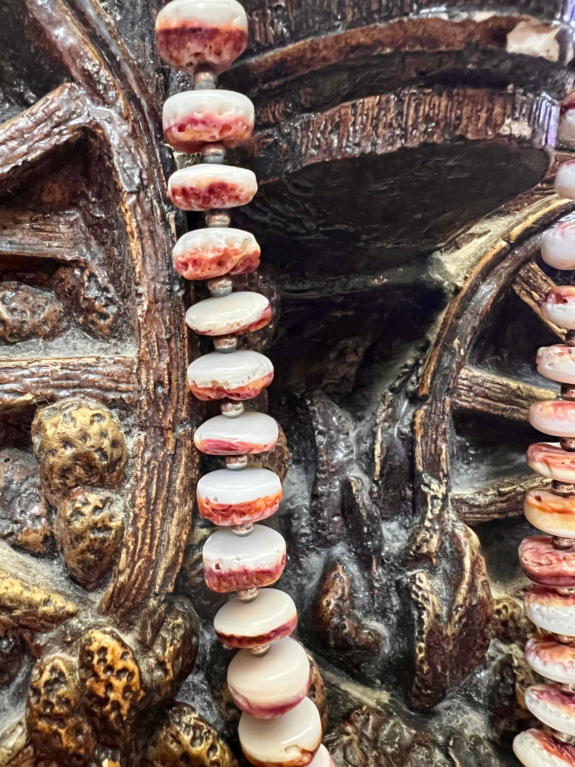 Chunky Spiny Oyster Disc Bead & Sterling Silver Necklace 20”