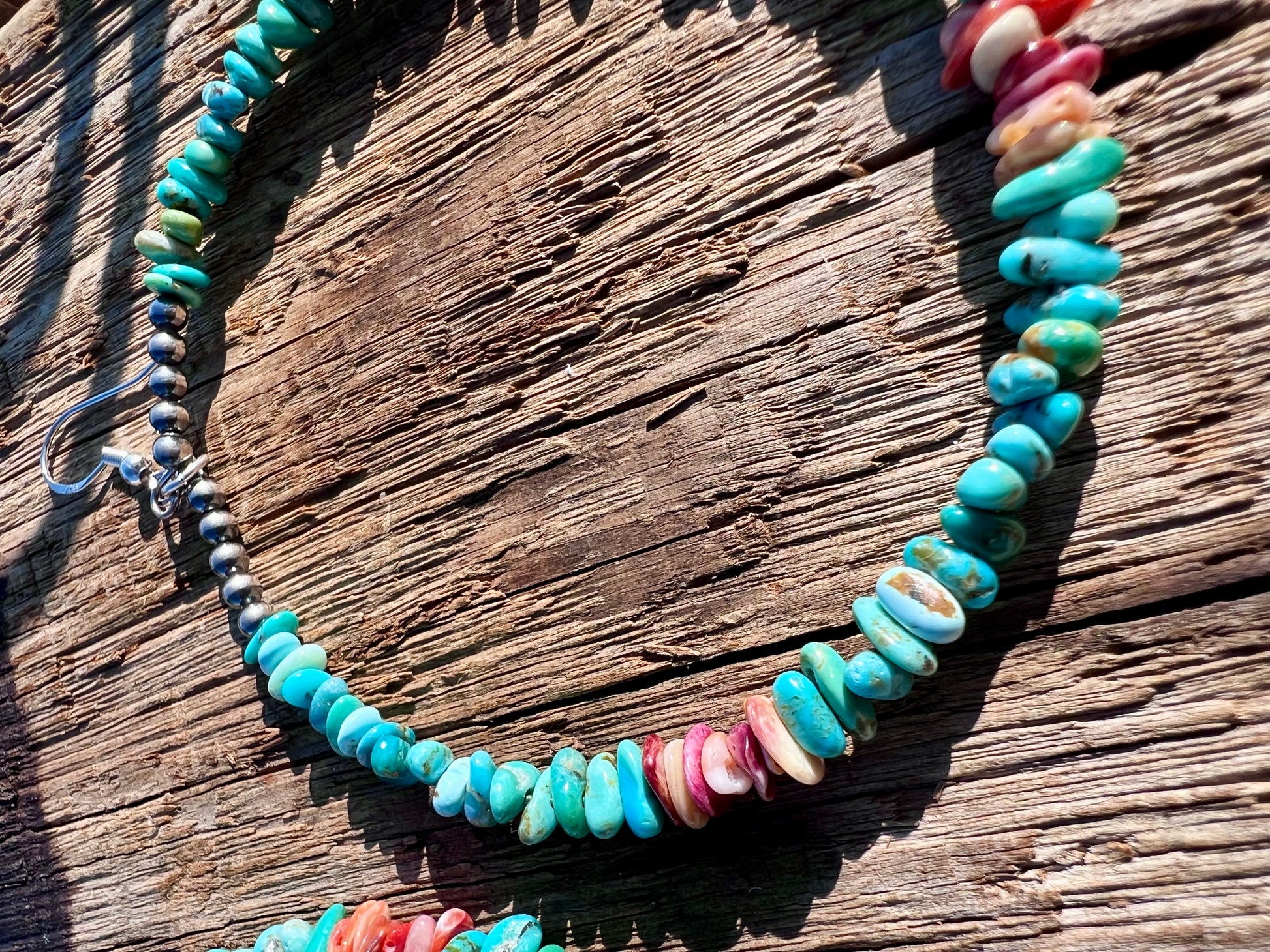 Sterling, Blue ridge Turquoise & Spiny Oyster Large Hoop Dangle Earrings 3.5β