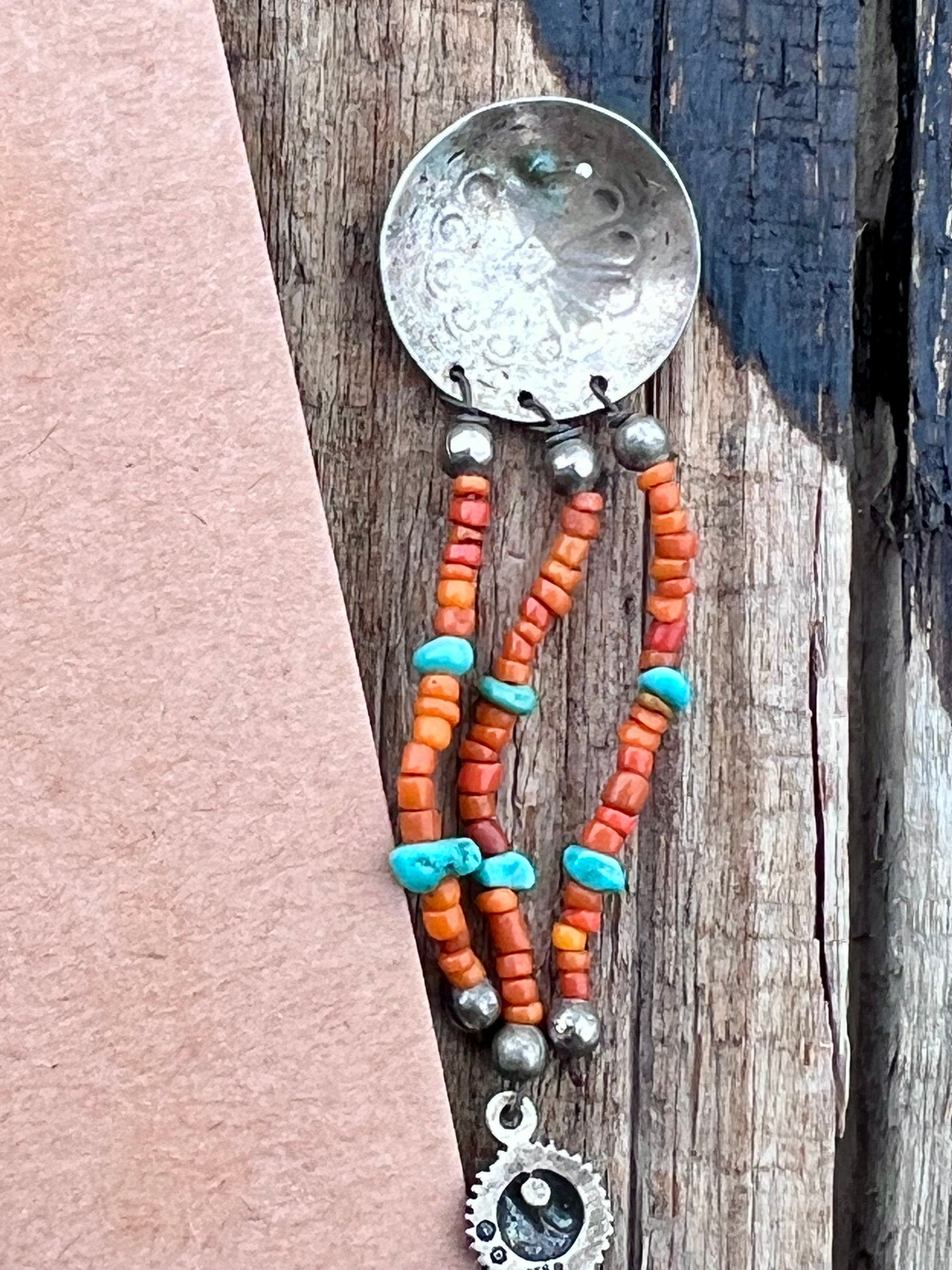 Vintage Handmade Sterling, Orange Spiny & Turquoise Concho Dangle Post Earrings 2.5β