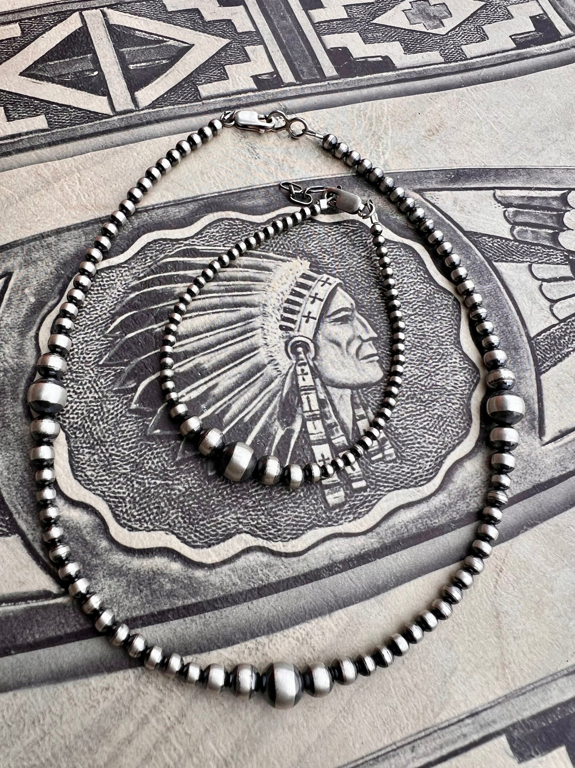Sterling Silver Oxidized Bead Necklace 14” & Bracelet 7”-8.5”Set