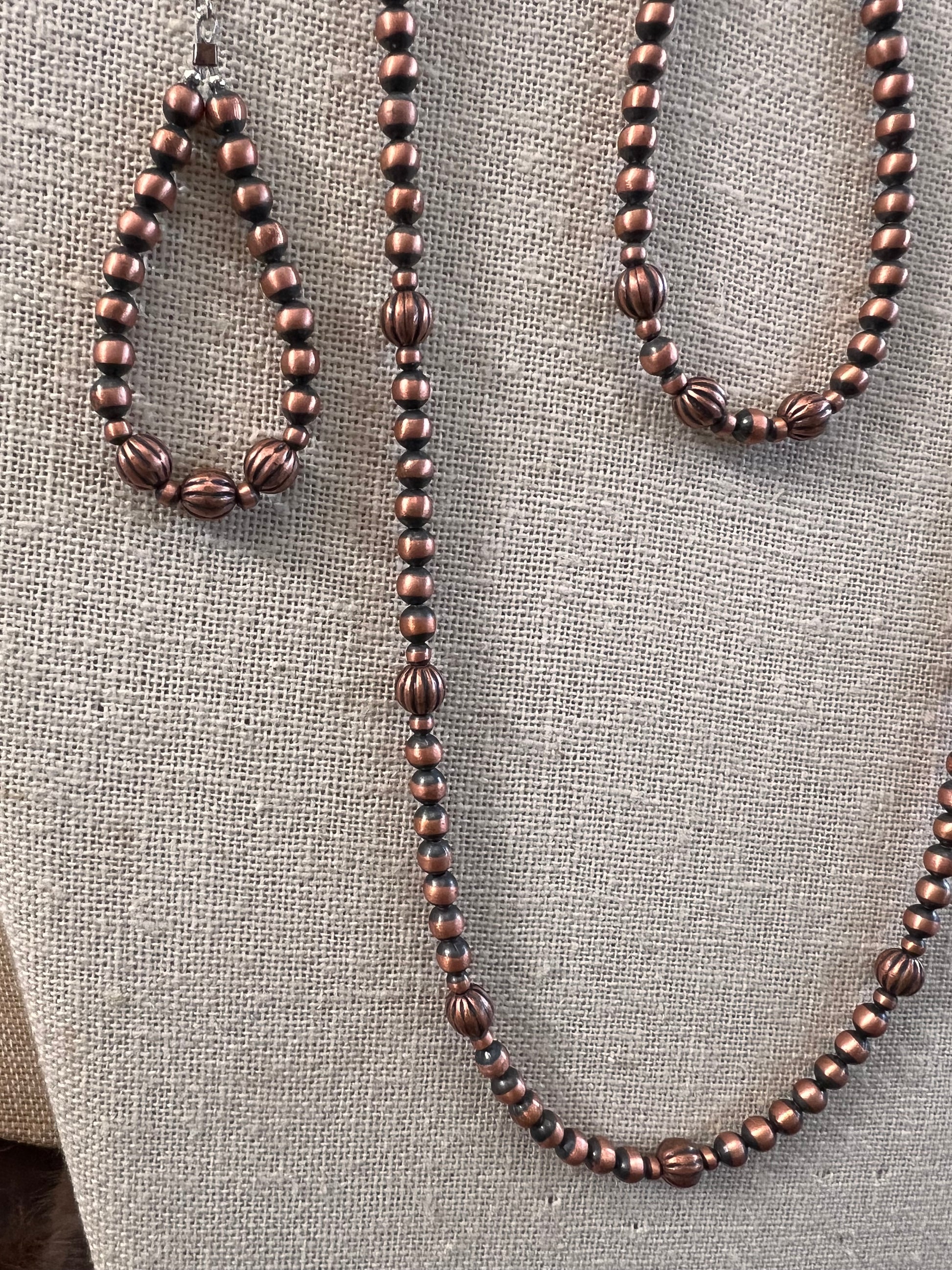 Oxidized Copper Bead Necklace, Bracelet & Earrings SET