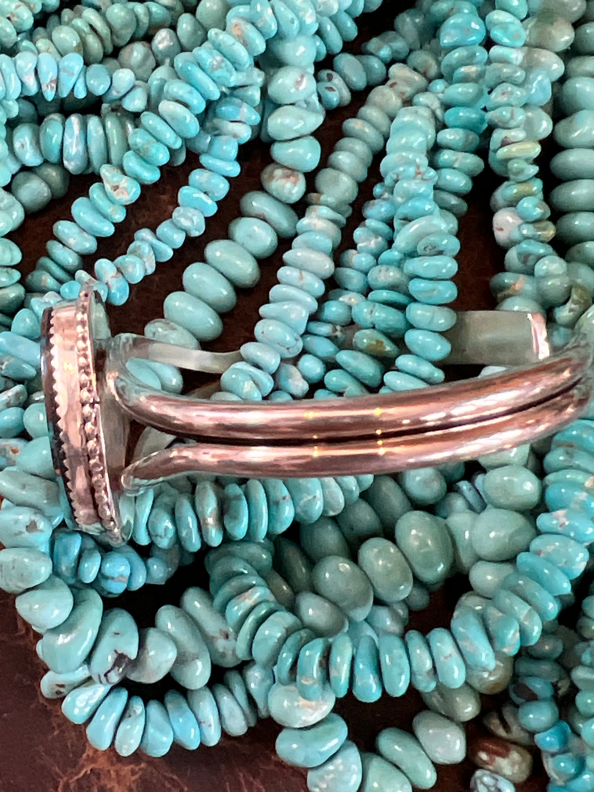 Navajo Handmade Sterling Bisbee Turquoise Cuff
