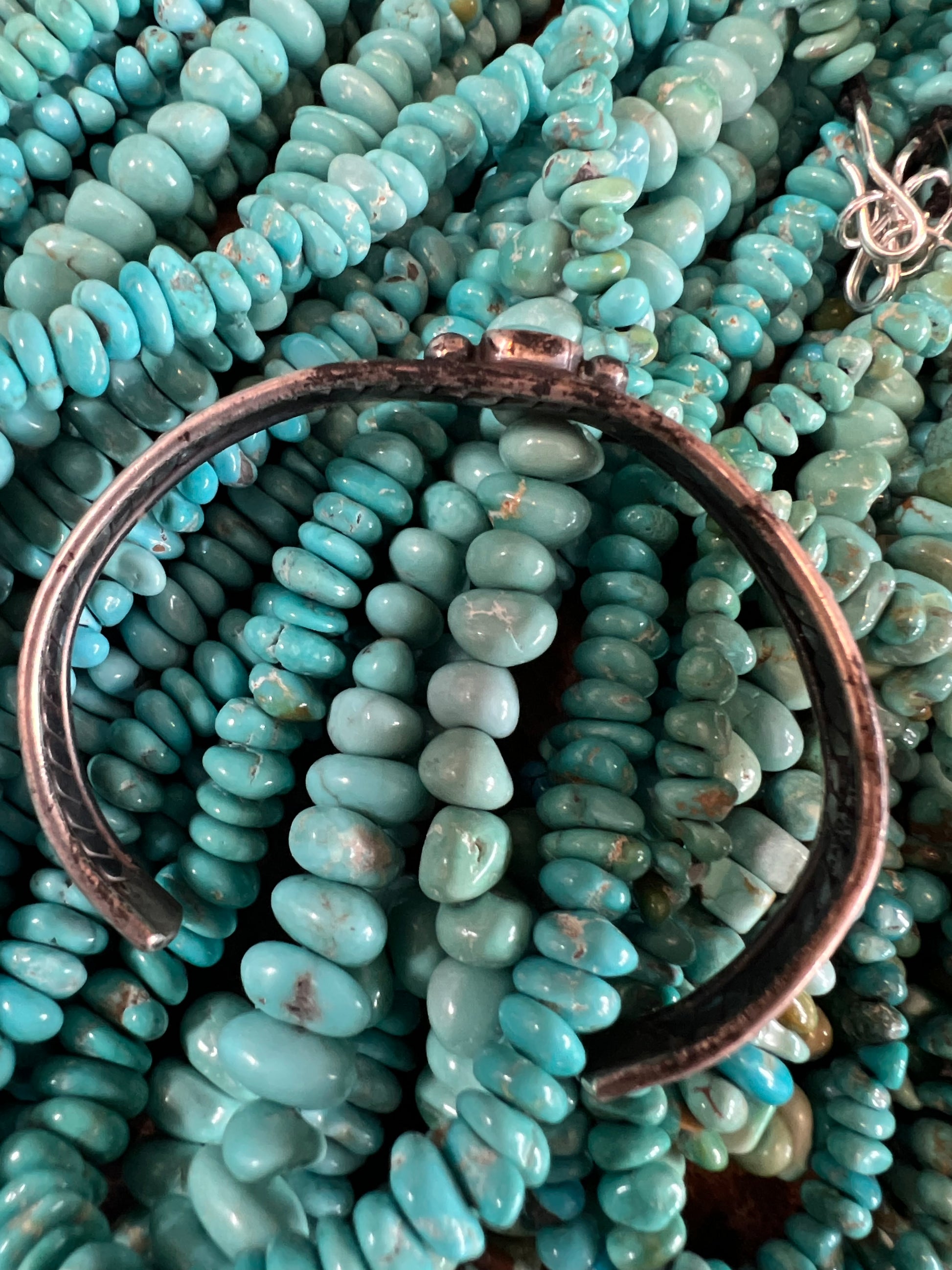 Vintage Dainty Sterling & Turquoise Cuff Bracelet Sz 5.25”