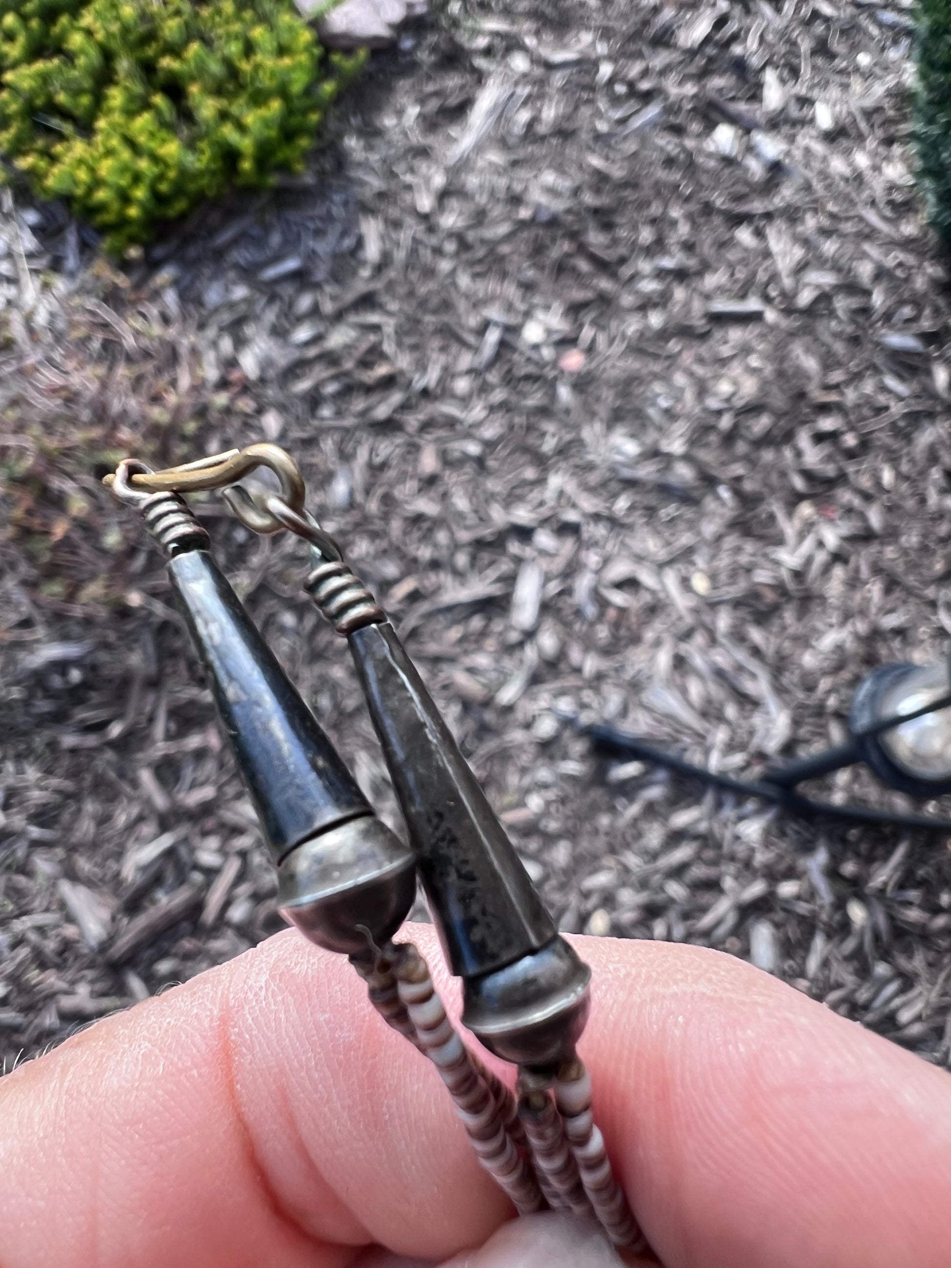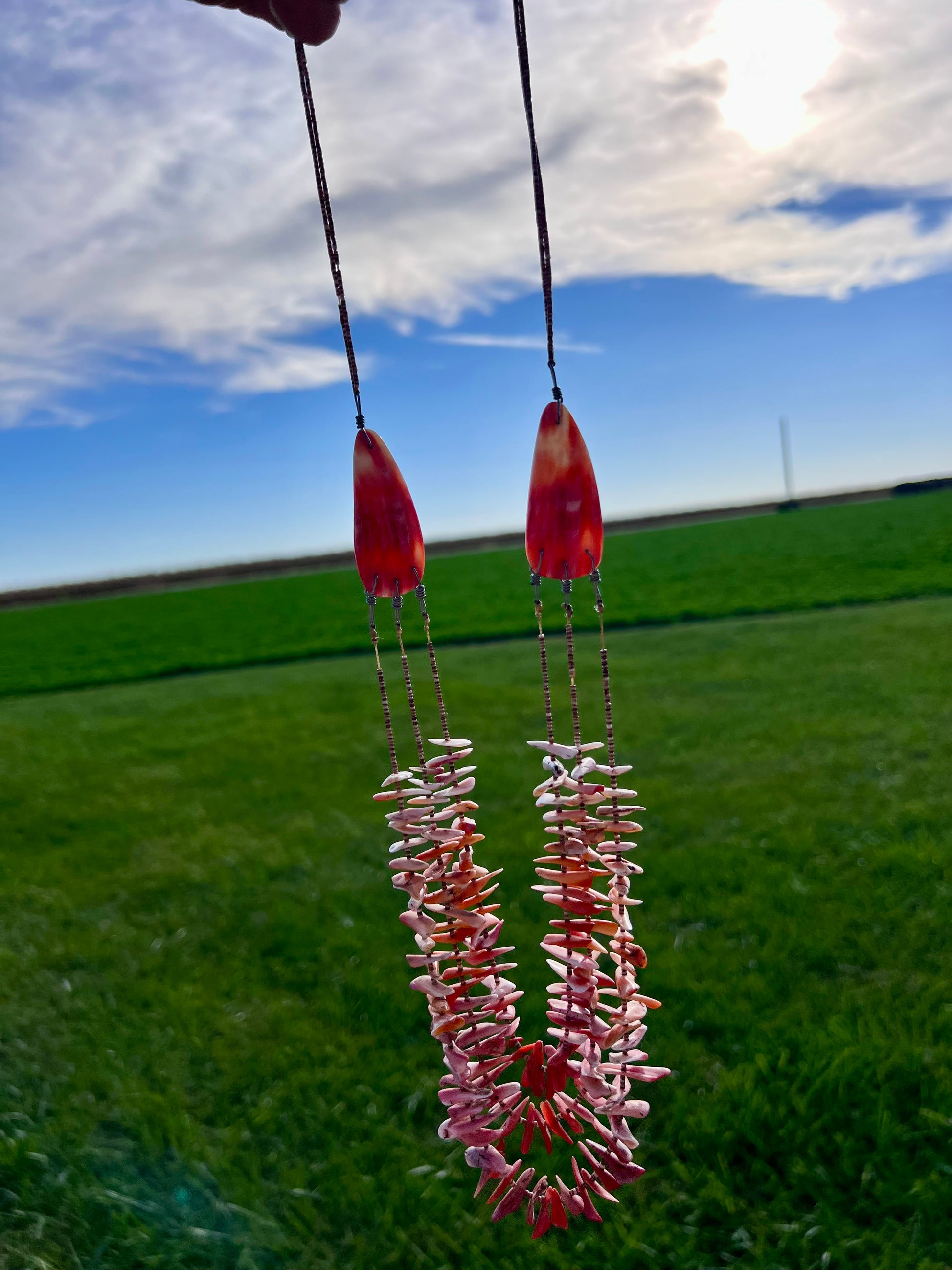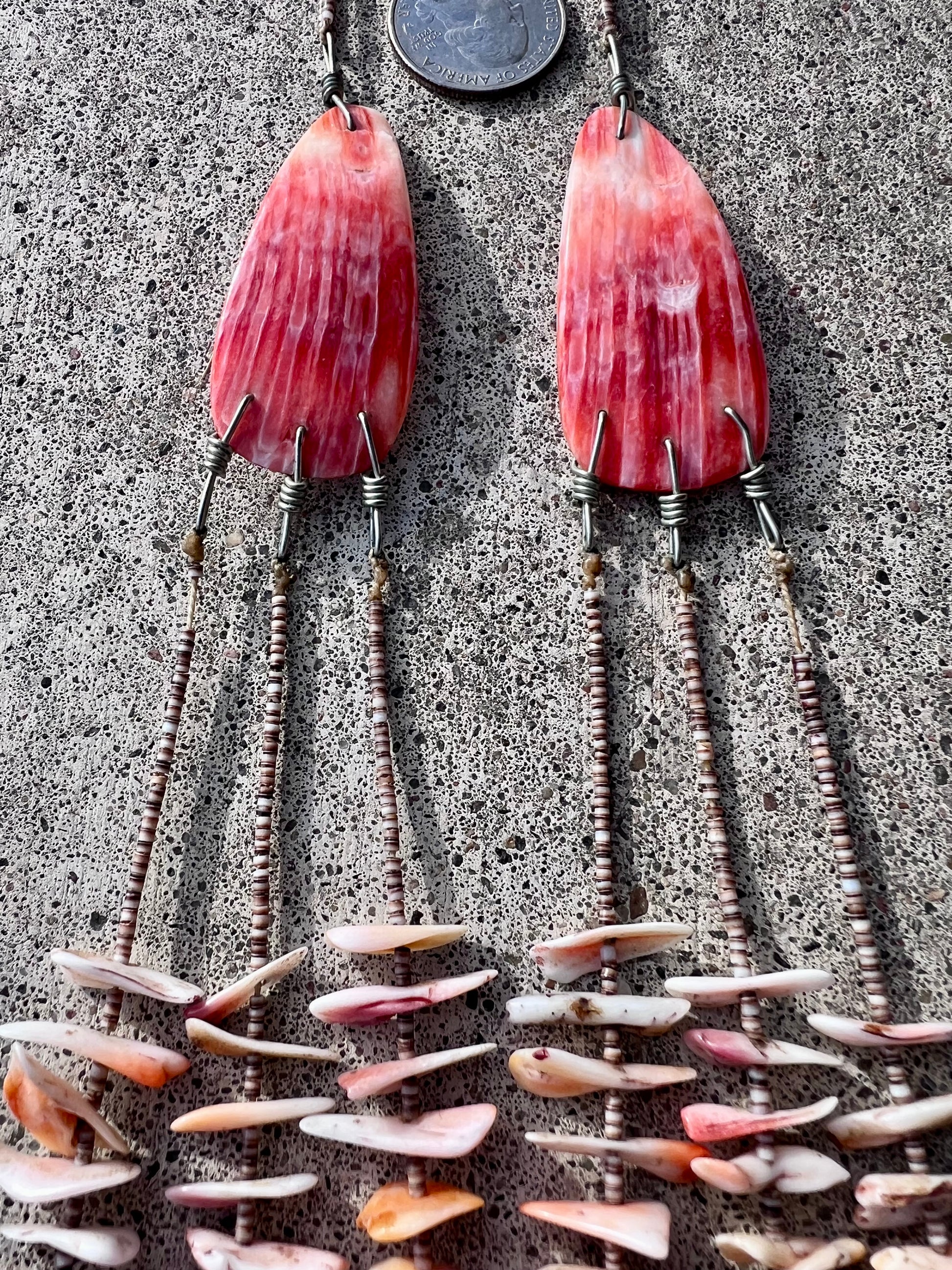 Vintage Kewa Santa Domingo traditional piece. It has Sterling Silver cones with very fine Olive Shell Heishi and 3-strands of spondylus Spiny Oyster with a beautiful ombré affect. In amazing condition for its age. A beautiful collector’s piece!!
