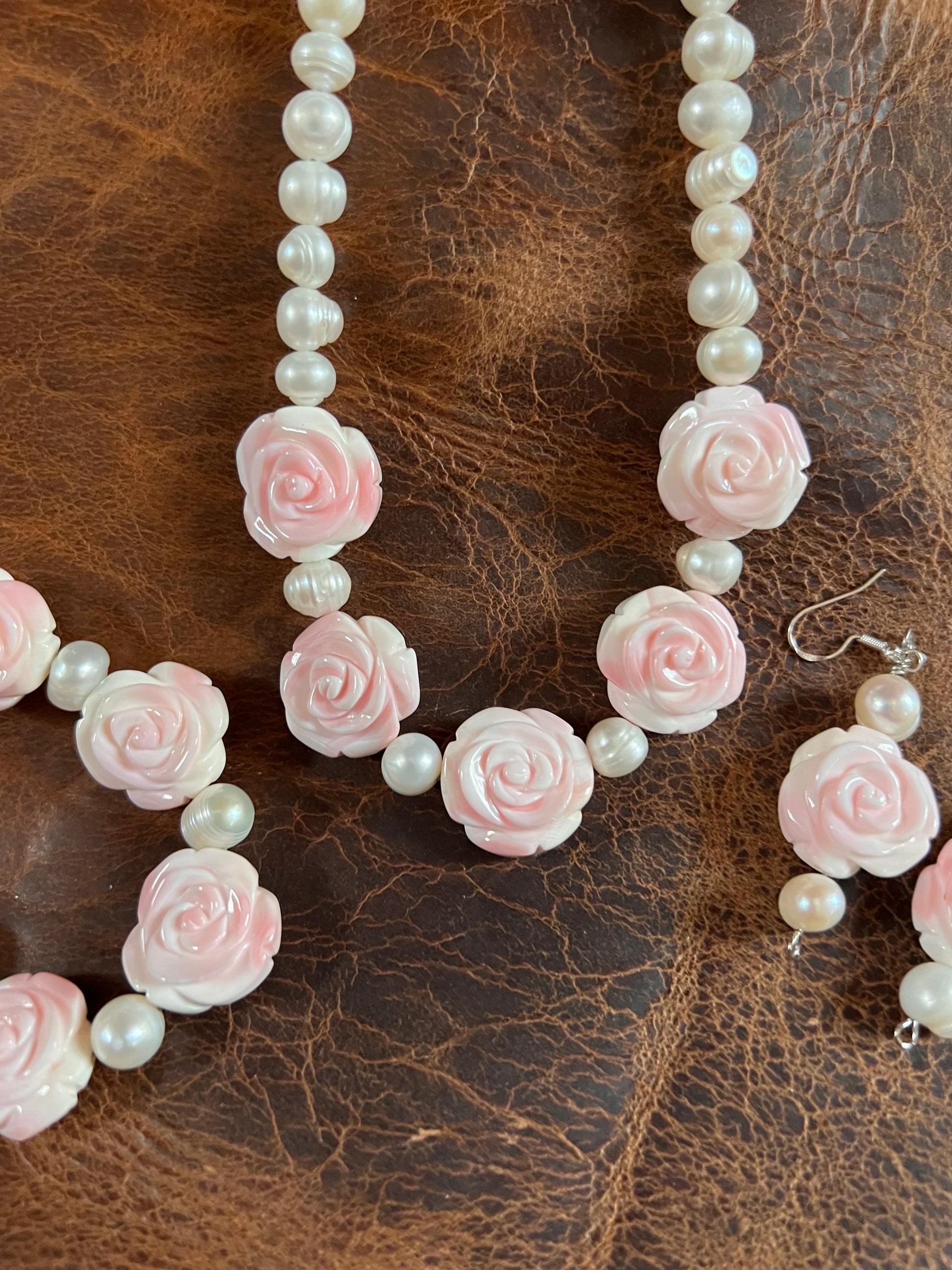 Please note: this is only for the Pink Conch carved rose pieces- the Sterling Oxidized Bead necklace is not included!! It is pictured to show how this necklace can be beautifully paired with the rose necklace.