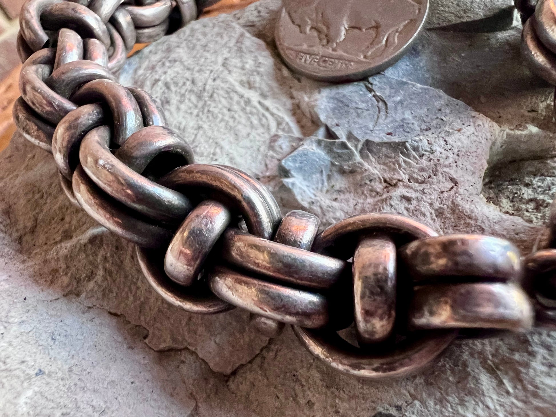 Vintage Men’s Chunky Sterling Silver Handmade Link Bracelet Sz 10”