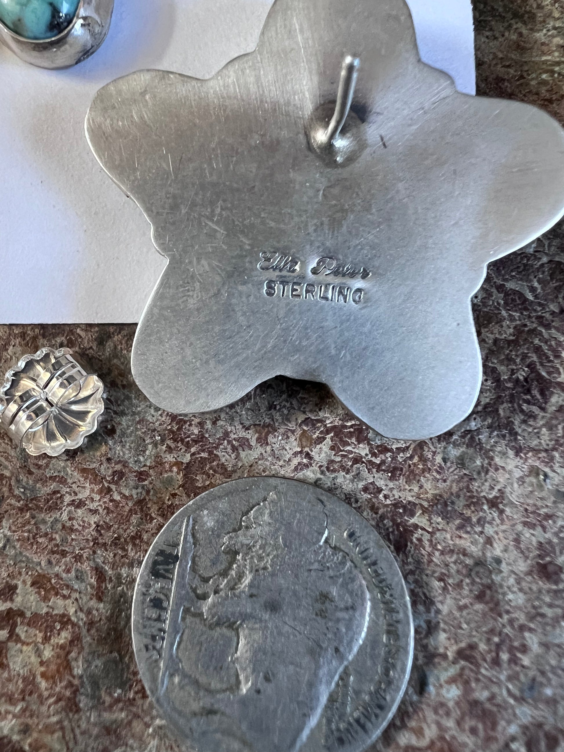Navajo Handmade by Ella Peter- Carico Lake Turquoise Flower Cluster Post Earrings 1.5β