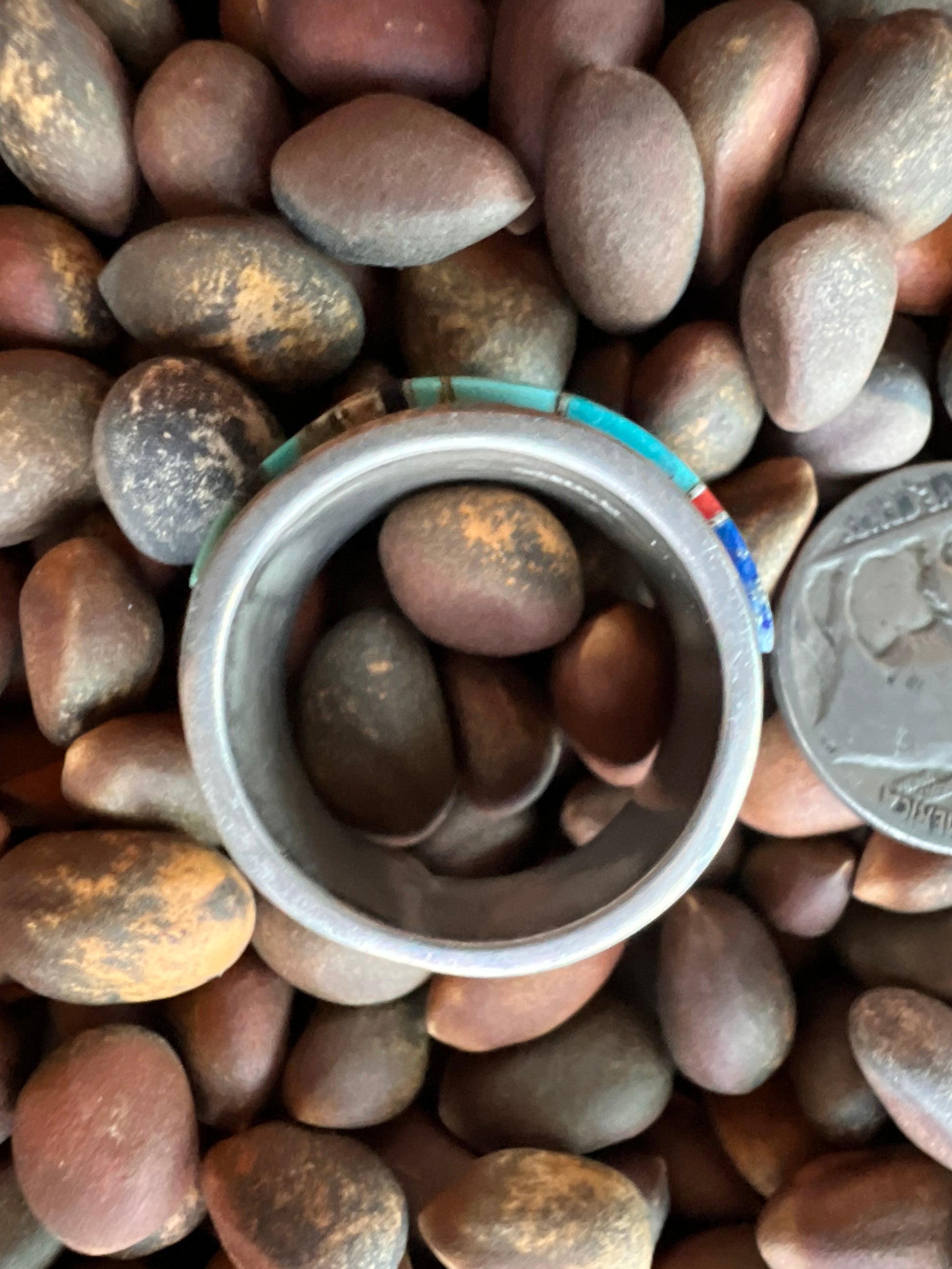 Vintage Navajo Handmade Men’s Inlay Ring - Lapis, Coral, Turquoise, Onyx, Jasper & Sterling Silver