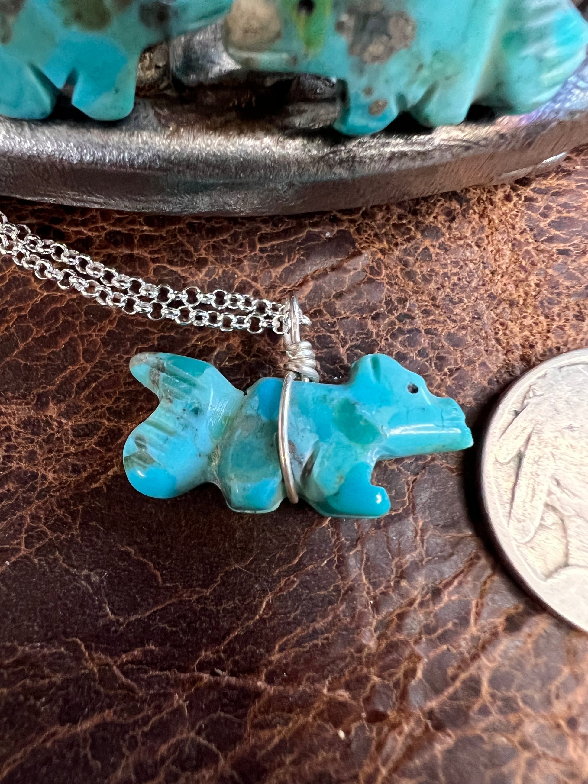 Zuni Handmade Turquoise Fox Fetish Post Earrings, Pendant & NecklaceSet 1βx1/2β